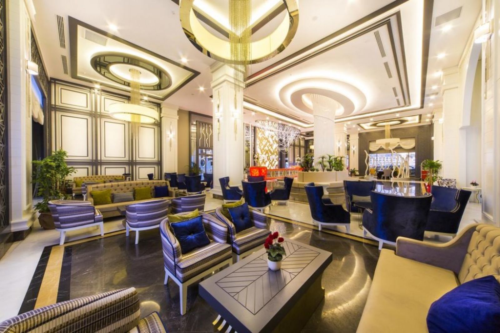 Основен ресторант, 2 а - ла - карт ресторанта, 2 снек бара, 7 бара, бистро, сладкарница, 2 открити и 1 закрит басейн, водни пързалки, дискотека, амфитеатър, нощен клуб, магазини, конферентни зали. За децата: Открит и закрит басейн, водни пързалки, анимация, мини клуб (4-12), мини диско. Безплатни услуги: Сауна, турска баня, парна баня, фитнес (16+), аеробика, дартс, боча, водна гимнастика, тенис на маса, плажен волейбол, анимация, WiFi(в лоби). Платени услуги: Масаж, фризьор, лекар, химическо чистене, билярд, електронни игри, рент-а-кар, водни спортове.