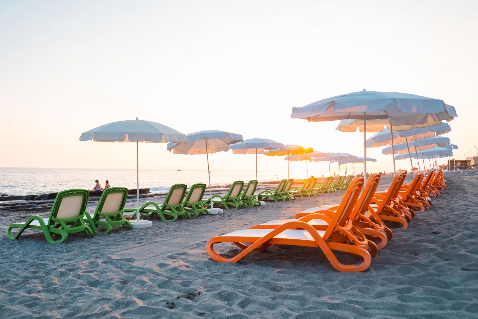 Собствен, каменист плаж, на 50 м. от хотела. Чадъри, шезлонги и матраци на плажа и при басейна - безплатно.