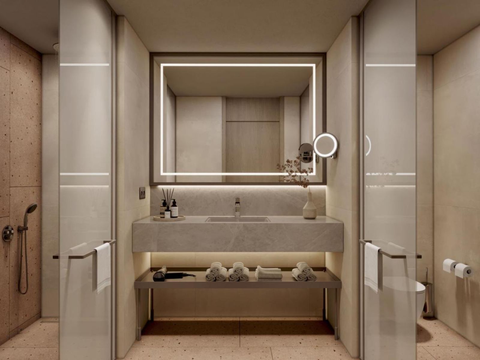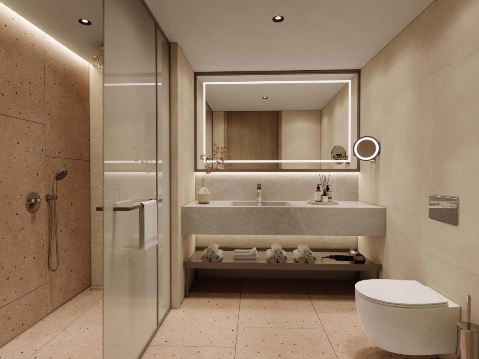 Всички стаи са оборудвани с климатик, телевизор, телефон, баня с душ, сешоар, минибар (безплатнo, зарежда се ежедневно с вода, безалкохолни напитки и бира), сет за чай/кафе, сейф (безплатно), балкон.