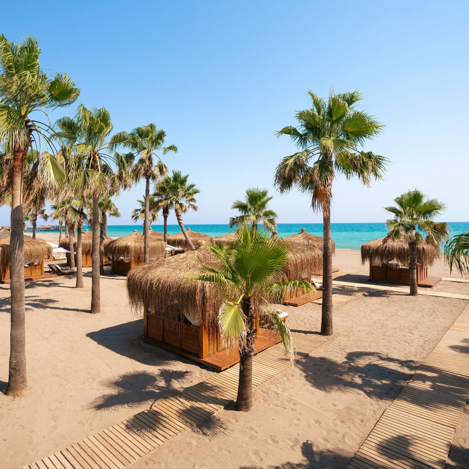 Собствен, пясъчен плаж с малки камъчета. Чадъри, шезлонги, матраци и плажни кърпи на плажа и при басейна - безплатно.
