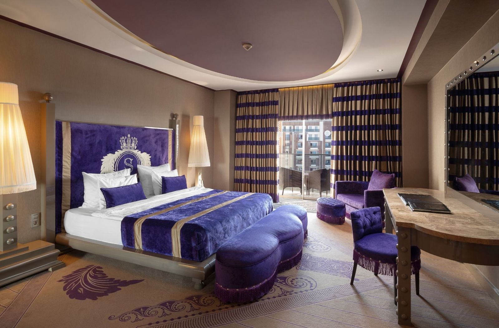 204 Luxury room (стаи с френски балкон - 4 от които за инвалиди – 45-62 м2), 55 Deluxe room (70-75 м2), 36 Superior room (с джакузи на балкона - 124 м2), 100 Family room (2 спални, 1 баня 37-43 м2), 8 Suite room (1 спалня, хол, 1 баня - 124 м2), 10 Premium Suite room (1 спалня, хол, 1 баня, джакузи на балкона - 160 м2), 4 Executive Residence Room (2 спални, хол, 1 баня - 186 м2), 2 King Residence Room (2 спални, хол с кът за хранене, 2 бани - 450 м2), 1 Presidential Residence Room (2 спални, хол с кът за хранене, 2 бани - 500 м2).