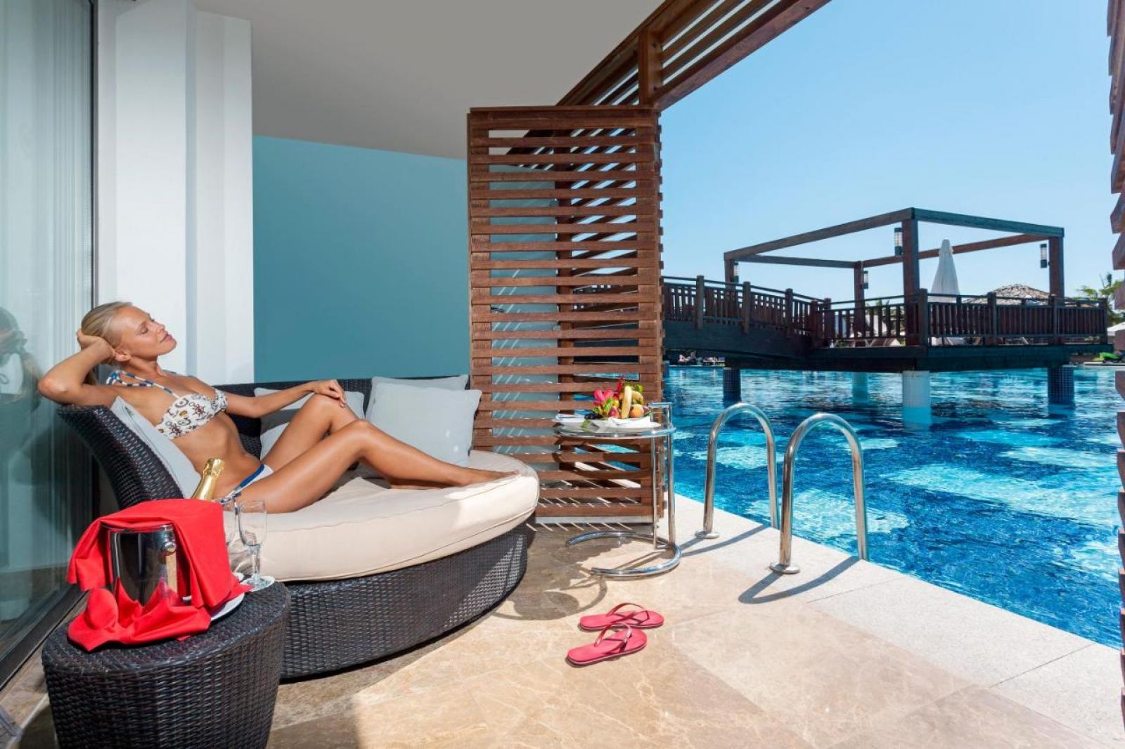 Основен ресторант, 1 а-ла-карт ресторант (интернационален, с предварителна резервация съгласно концепцията на хотела ), 5 бара, сладкарница, открит и закрит басейн, СПА център, дартс, фитнес, тенис корт, тенис на маса, боча, водна гимнастика, аеробика, баскетбол, плажен волейбол, фризьор, пералня, магазини, лекар, 1 конферентна зала.