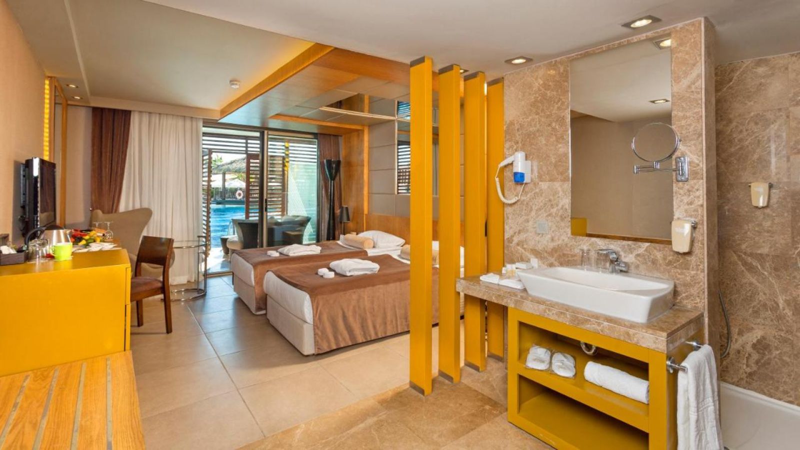 Swim up: 36 m² оборудвана с 1 френско легло или 2 единични легла, баня