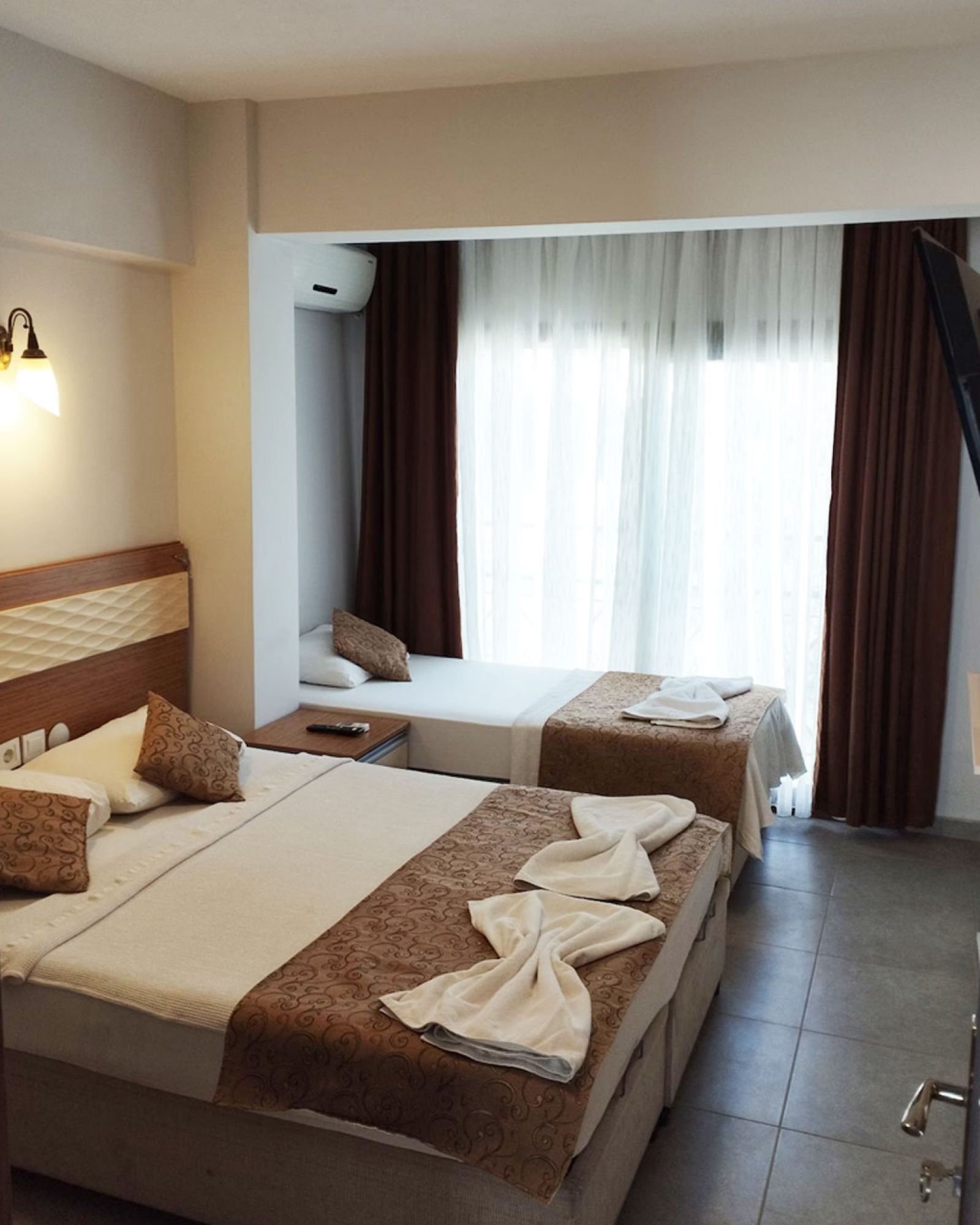 Хотелът се намира на 80 км от летището в гр. Измир, на 125 км от летище Милас, на 2 км от центъра на Кушадасъ, на 200 метра от брега на морето, в близост до Ladies Beach. Реновиран 2023 г.