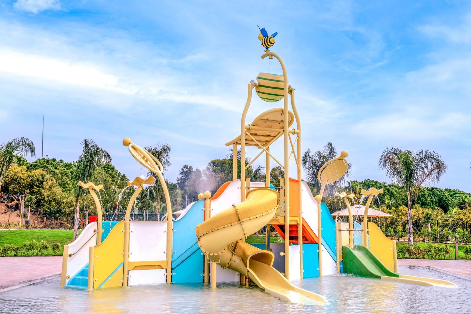 За децата: 2 открити и 1 закрит (отопляем в периодите 21.03-30.04 и 01.10-31.10) детски басейна,3 водни пързалки за деца, воден парк, мини клуб (3-9 г), детска анимация.