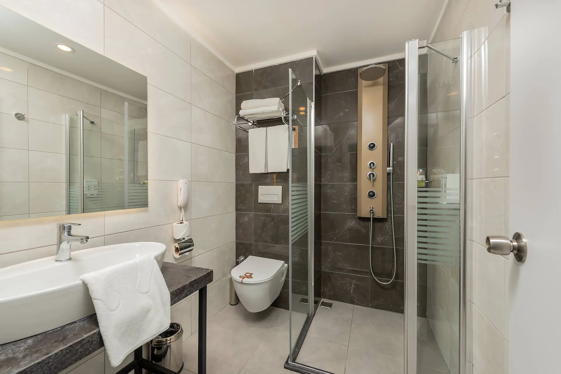 Хотелът разополага с общо 240 стаи разположени в един 6-етажен корпус, от които Standard Room (27 м2), Superior Room (34 м2), Deluxe Room (34 м2, с джакузи на терасата), Famıly Room (2 стаи, 1 баня, 64 м2), Premium Loft Room (на 2 етажа с хол и спалня, 1 баня, 42 м2). Всички стаи са оборудвани с климатик, телевизор, телефон, баня с душ, сешоар, мини бар (безплатен - при пристигане само), сет за кафе/чай,  сейф (безплатен), WI-FI интернет (безплатен). Почистване на стаите - всеки ден, смяна на спалното бельо и кърпите - 2 пъти седмично.