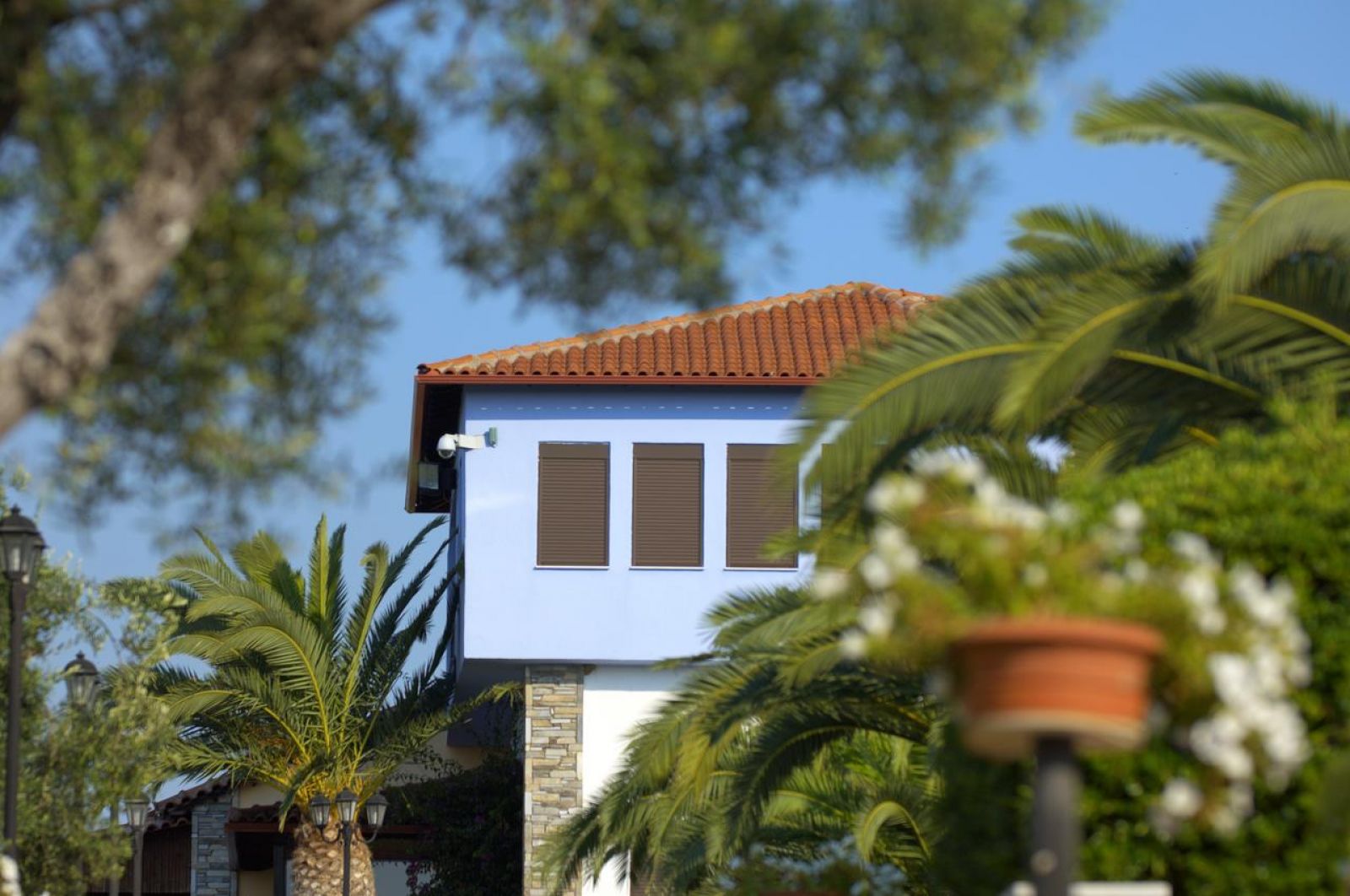 Състои се от 15 отделни сгради и бунгала, разположени сред красиви градини с маслинови и борови дървета.